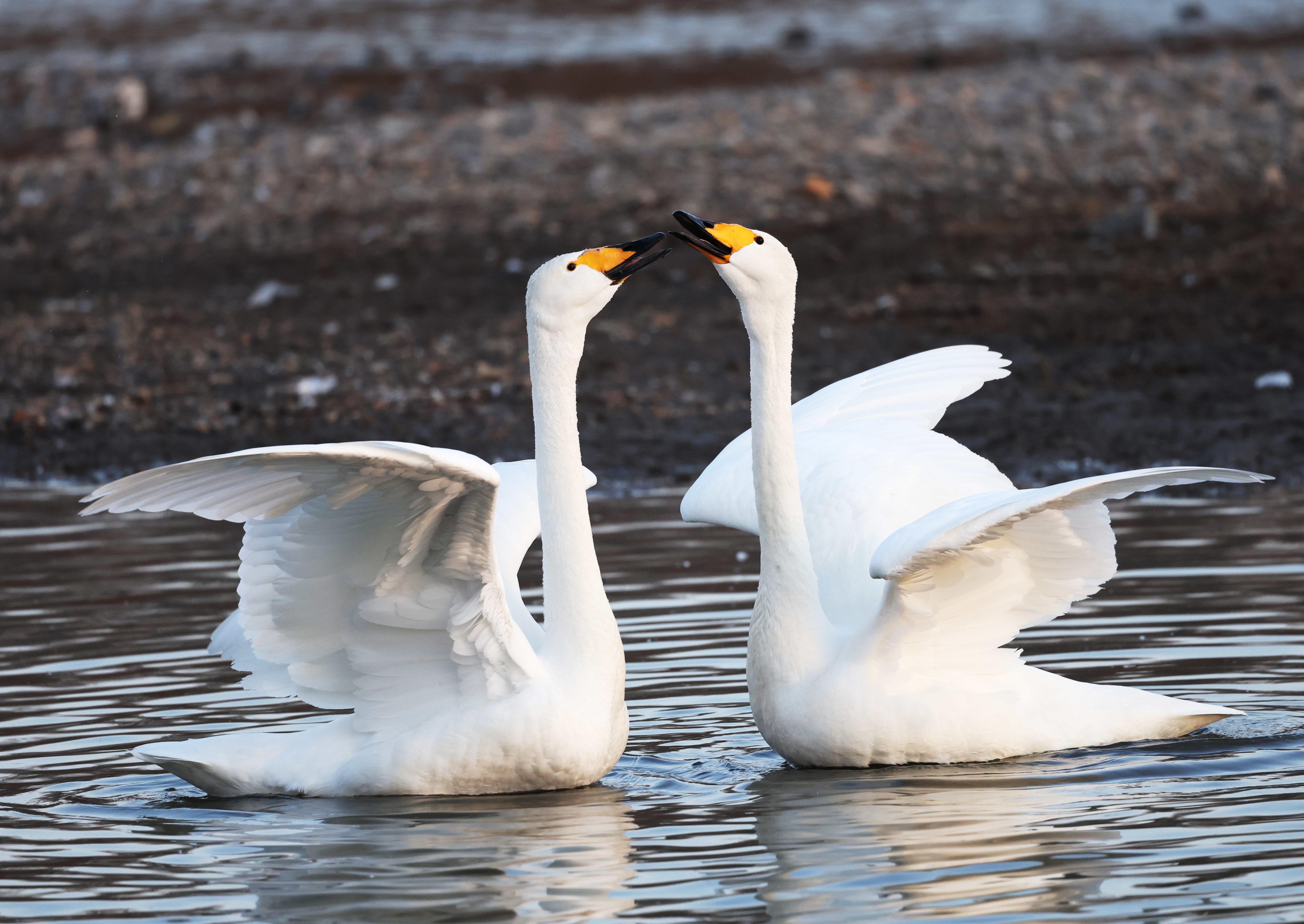 3月11日,天鹅在辽宁省北票市红村天鹅湾栖息。